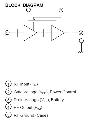 The RA07M4047M is a 7-watt RF MOSFET Amplifier. It is designed for non-linear FM modulation, but may also be used for linear modulation by setting the drain quiescent current with the gate voltage and controlling the output power with the input power. The nominal output power becomes available at 3V (typical) and 3.5V (maximum). At VGG=3.5V, the typical gate current is 1 mA. The battery can be connected directly to the drain of the enhancement-mode MOSFET transistors.