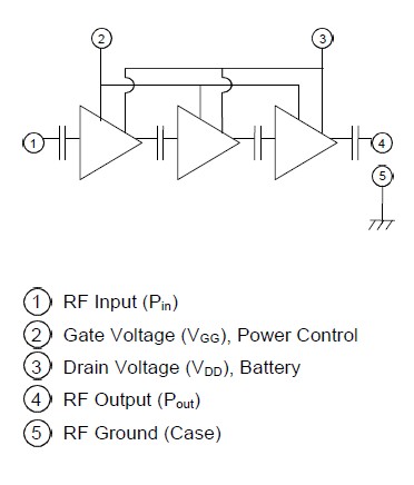 RA30H4452M features: (1)Enhancement-Mode MOSFET Transistors (IDD=0 @ VDD=12.5V, VGG=0V); (2)Pout>30W, hT>40% @ VDD=12.5V, VGG=5V, Pin=50mW; (3)Broadband Frequency Range: 440-520MHz; (4)Low-Power Control Current IGG=1mA (typ) at VGG=5V; (5)66 x 21 x 9.8 mm; (6)Linear operation is possible by setting the quiescent drain current with the gate voltage and controlling the output power with the input power.